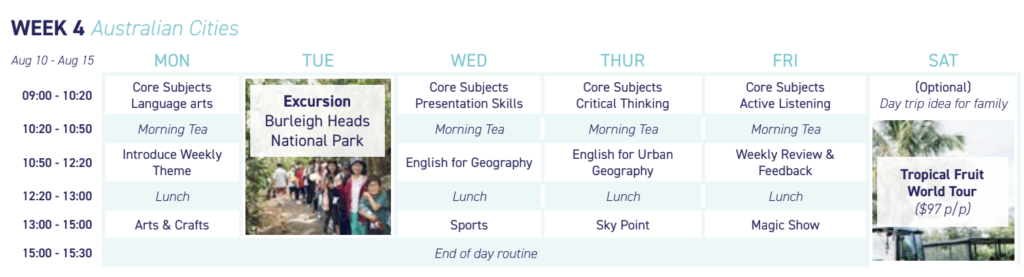 • 現地校体験は週後半に集中しており、語学学校で準備を整えてから参加。